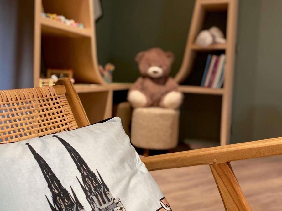 Bei der Rückkehr finden Eltern und Kinder eine Spielecke mit Konsolen und Bilderbüchern vor; die Jüngsten können sich austoben, während die Erwachsenen die Reiseanstrengung hinter sich lassen.