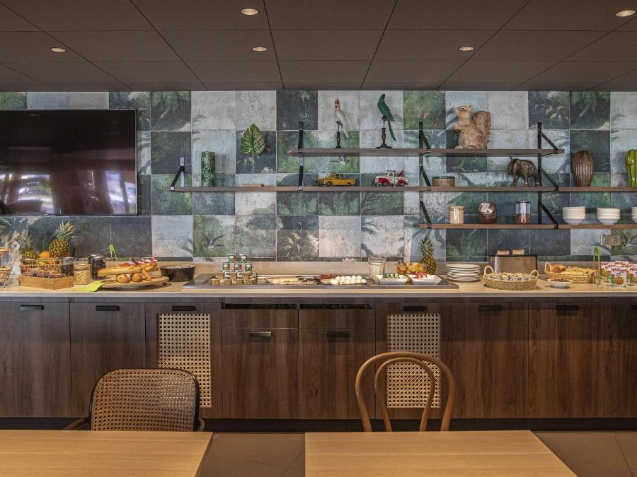 Beim Betreten der automatischen Tür fällt der Blick auf einen hellen Raum, in dem kräftige Farben an die umliegenden Vulkanlandschaften erinnern; der Empfang erfolgt mit einem schnellen Lächeln und einer diskreten Geste, die auf den Selbstbedienungstresen für ein kostenloses Heißgetränk hinweist.