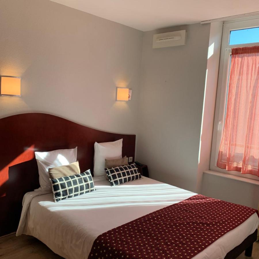 Die ruhige Atmosphäre der Zimmer, verstärkt durch die Doppelverglasung, steht in angenehmem Kontrast zur Lebhaftigkeit des Viertels. Trotz der Nähe zum Bahnhof und den Hauptverkehrsachsen garantiert das Hotel eine erholsame Umgebung für ruhige Nächte. Darüber hinaus bieten die Zimmer, die zum Innenhof hin ausgerichtet sind, eine noch friedlichere Kulisse.