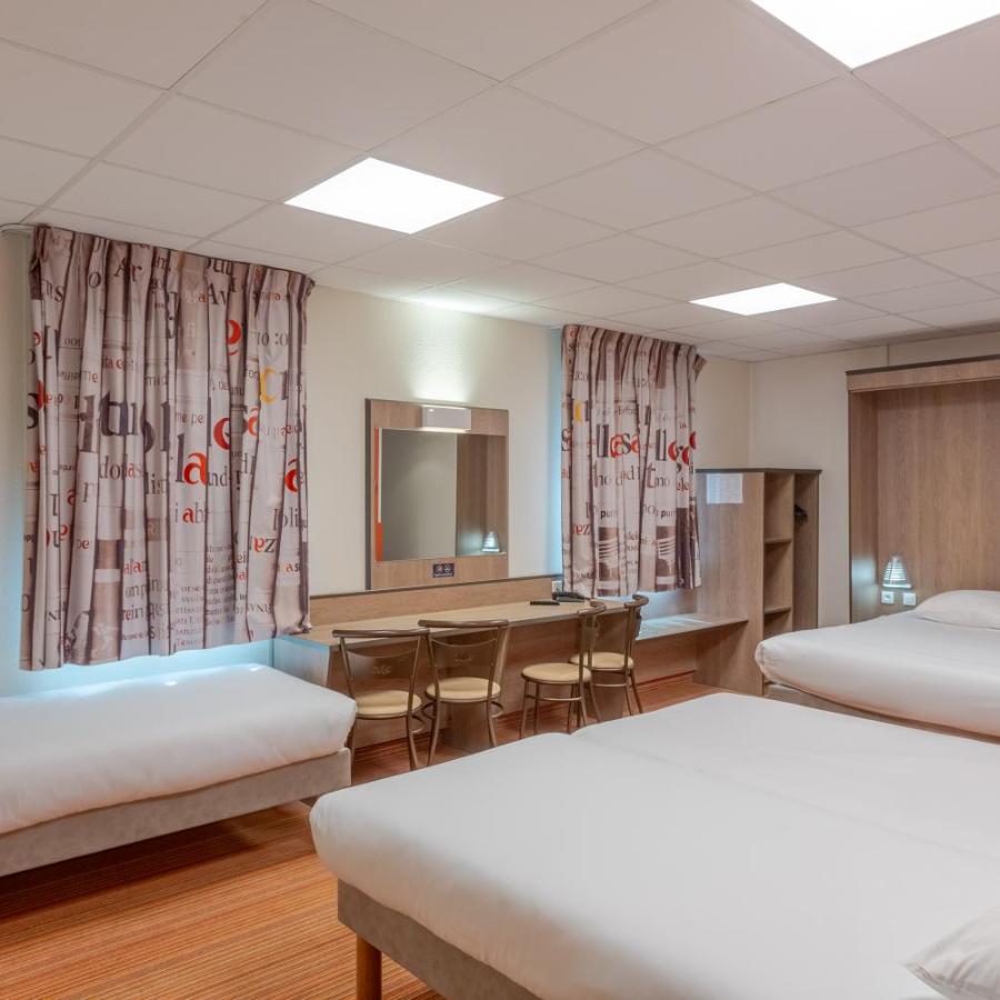 Las 55 habitaciones ofrecidas están dirigidas tanto a viajeros solos como a familias. Su generosa superficie, que va de los 17 a los 25 m², ofrece el espacio necesario para relajarse, trabajar o disfrutar de una estancia en grupo sin sentirse apretado. El aislamiento acústico está particularmente cuidado, garantizando noches tranquilas incluso en las horas más animadas.